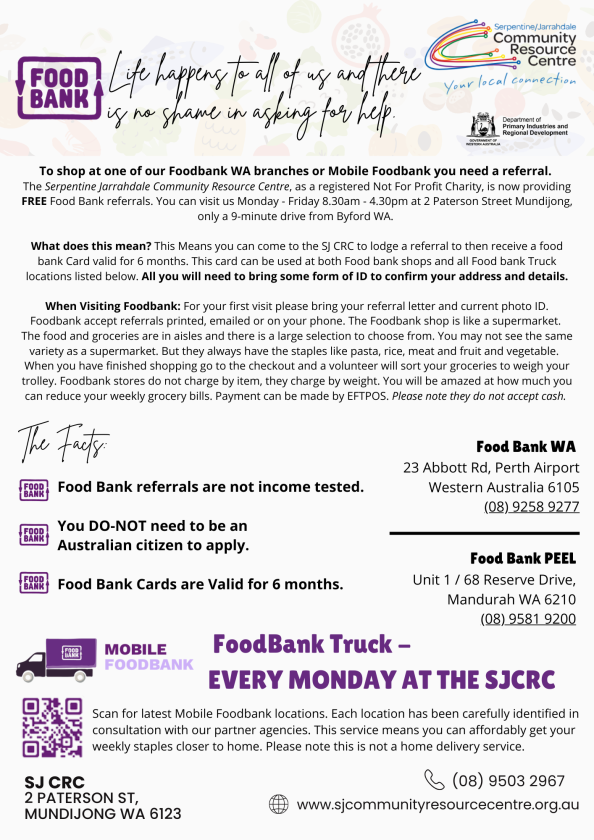 Our friends at Foodbank WA are visiting the Serpentine Jarrahdale Community Resource Centre every week, bringing fresh food and essential groceries directly to our community.